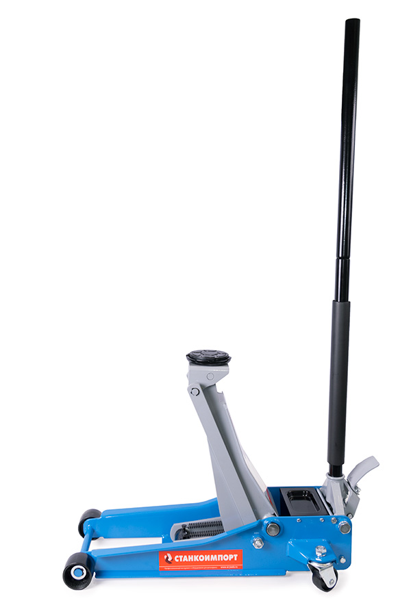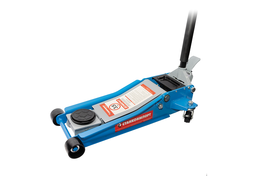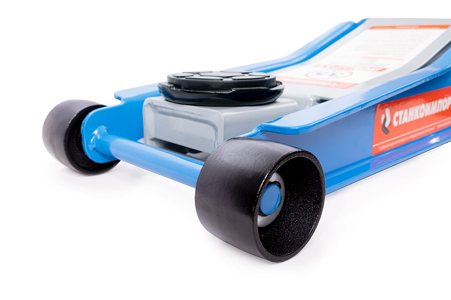 Подкатной гидравлический домкрат имеет ручной привод и предназначен для подъема машины при осуществлении ремонтных работ — к примеру, замены колес. Он отлично подойдет для личного использования на даче, в гараже или для работы на небольшой шиномонтажной станции.