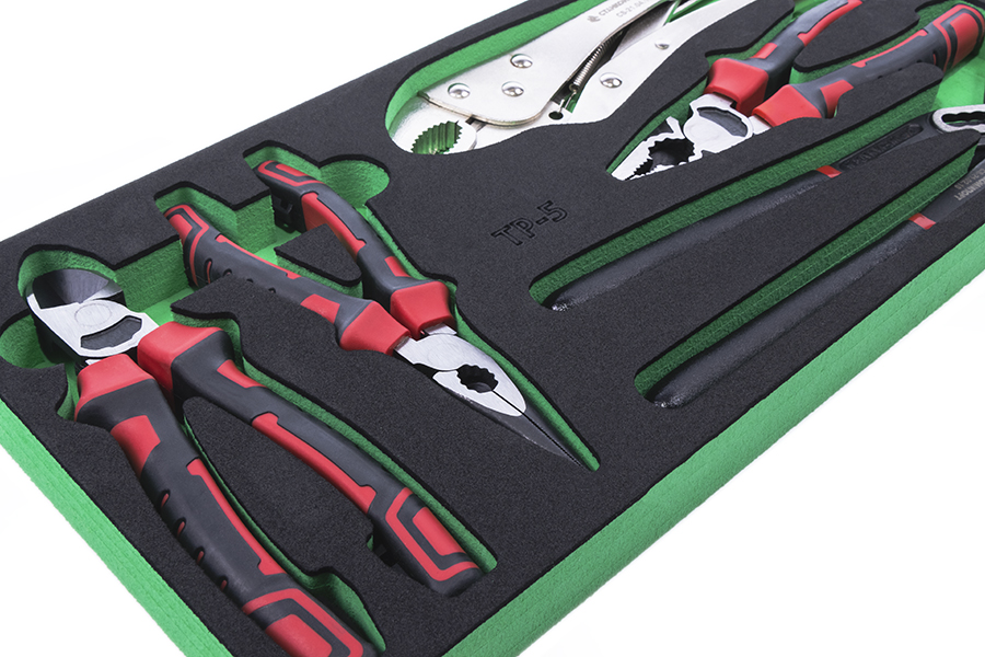 Ложемент EVA имеет высокую устойчивость к механическим воздействиям и влиянию ГСМ. Благодаря этому, он жестко фиксирует инструменты, быстро восстанавливает форму при деформации, не разлагается под действием масел и других веществ.