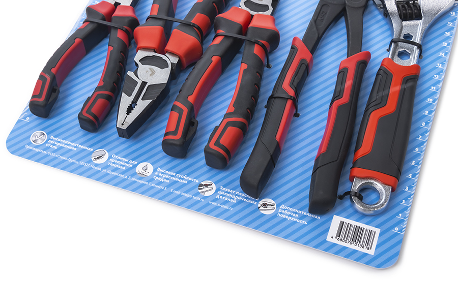 Инструменты изготовлены из высококачественной легированной инструментальной стали, с последующей закалкой до твердости в пределах 46-48HRC, что соответствует всем требования нормативной документации. Имеют двухкомпонентные, эргономичные рукояти. На внутренней поверхности рукоятей имеются специальные отливы, предназначенные для крепления темляка. Благодаря высококачественным компонентам рукояти имеют высокую стойкость к агрессивным средам.