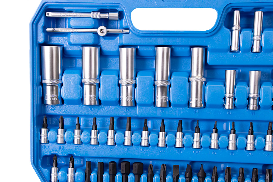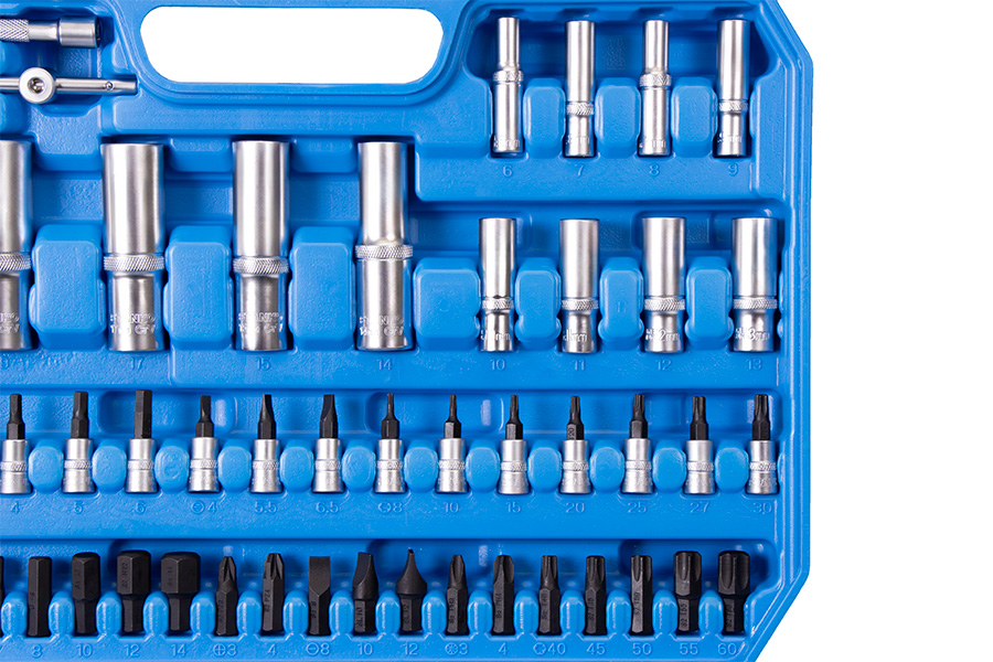 Отвертки, торцевые головки и биты основных типоразмеров выручат в разных ситуациях. Трещоточные ключи имеют механизм 72 зуба с шагом 5° и помогут раскрутить гайки в труднодоступных местах. Карданы и удлинители нужны для еще более эффективного решения задач.