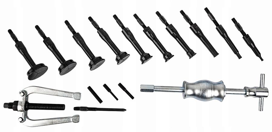 Набор удобен в работе и, благодаря большому количеству адаптеров может демонтировать подшипники диаметром 8-58 мм. Подходит для большинства марок и моделей легковых автомобилей.