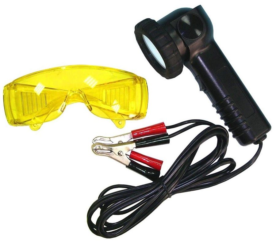 2. Поиск течи с помощью UV-течеискателя через несколько километров пробега автомобиля.