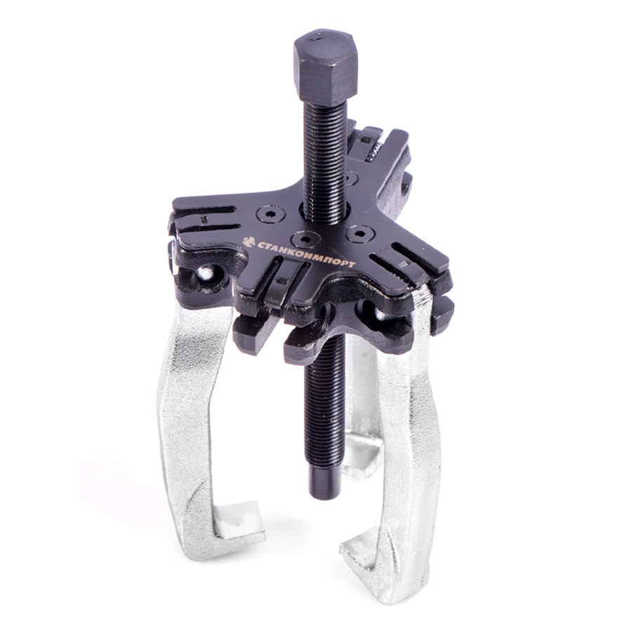 Отличительной особенностью данного съемника является механизм крепления захватов, которой представляет собой, кованную упорную площадку в которую устанавливаются захваты. На захватах имеются специальные насечки позволяющие фиксировать захват в заданном положении, удержание обеспечивается за счет специальной пластины из пружинной стали. Благодаря такой конструкции можно с считанные секунды трансформировать съемник под внутренний или внешний захват.