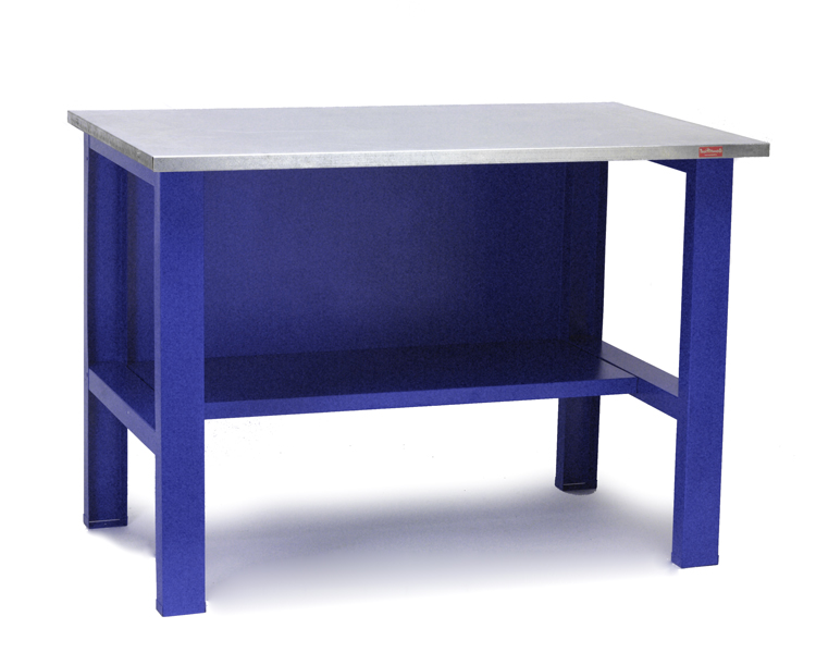Основание верстака изготовлено из высокопрочного листового металла, а столешница из фанеры толщиной 24 мм, обшитой оцинкованным металлом толщиной 1 мм. Прочная конструкция верстака позволяет выдержать нагрузку на столешницу до 300 кг.