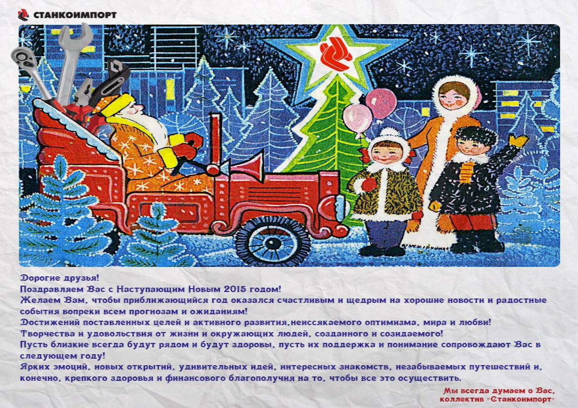 C Наступающим Новым 2015 годом! 30 декабря 2014 СТАНКОИМПОРТ Друзья, пусть наступающий Новый Год будет по-настоящему счастливым и добрым для вас и ваших близких! Пусть все удается, складывается, исполняется и получается!