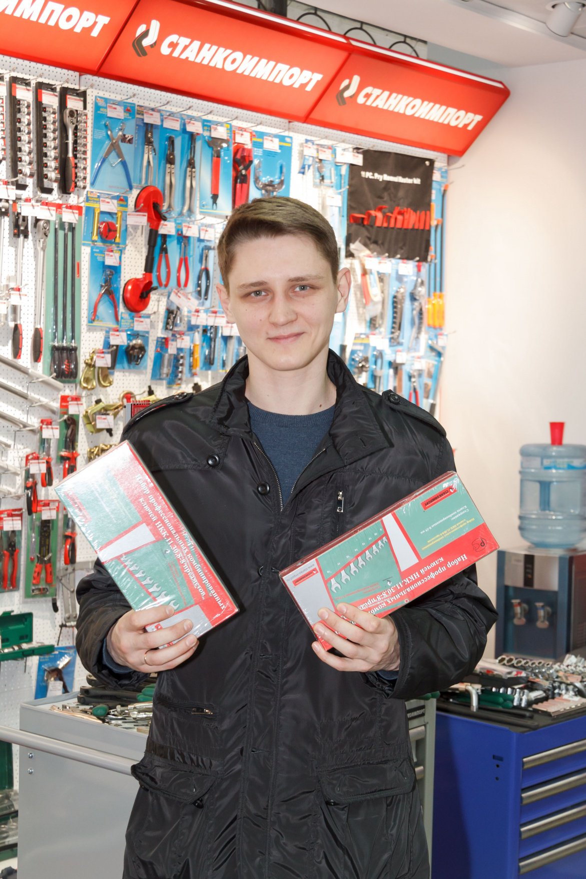 Егоров Олег, который показал лучшие результаты на ралли, посетил офис "Станкоимпорт" и обменял свои сертификаты на наборы инструмента "Станкоимпорт".