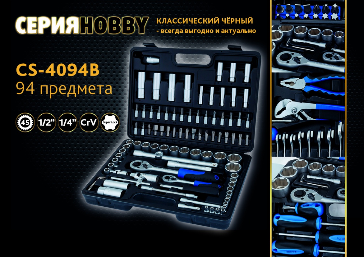 Набор серии Hobby в комплектации из 94 предметов (арт. CS-4094B) - это набор инструмента для личного использования в домашнем обиходе и гараже.
